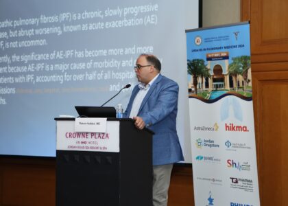 الدكتور راكان حداد يقدم محاضرة متقدمة في دورة المجلس الطبي الأردني للمعالجة التنفسية
